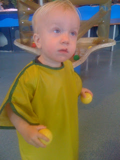 Sweet Alex has decided he needs to be heard a bit more in the family, and the tantrums have begun. Often they involve his beloved tennis racket (found at the preschool garage sale, and purchased by Ben from piggy bank proceeds) - like when one of his parents want to take it away to wash hands.